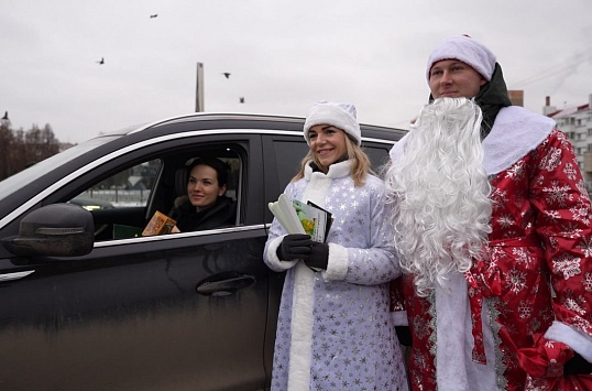 Полицейский Дед Мороз и Снегурочка поздравили автолюбителей Подольска