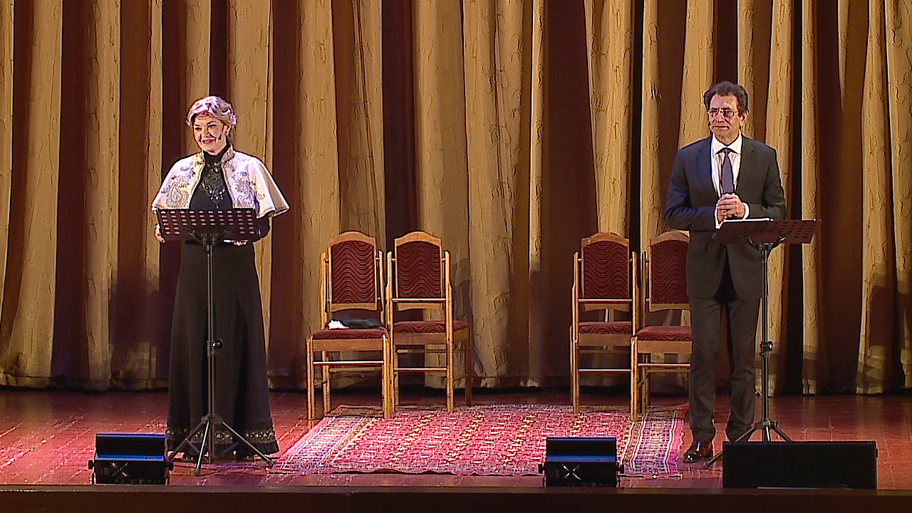На сцене мэтры современного театра. Народная артистка СССР Людмила Чурсина и народный артист России Евгений Князев. Концертная специфика спектакля не дает полной артистической свободы, в их распоряжении лишь голос, мимика и жесты. Но и этого достаточно, чтобы заворожить зал. Их партнерство приковывает взгляд и слух, через несколько секунд диалога, зритель уже погружается в мир Льва Толстого, в жизнь семьи Карениных.