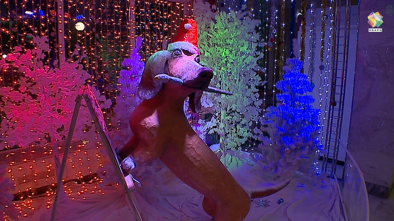 Символ года - собака - появилась во дворце культуры Октябрь и тут же стала объектом повышенного внимания. Создали ее здесь же, во дворце. На работу потратили полные восемь дней. Корпус сделали из пеноплекса. Материал поддался не сразу, зато результат получился отличным.