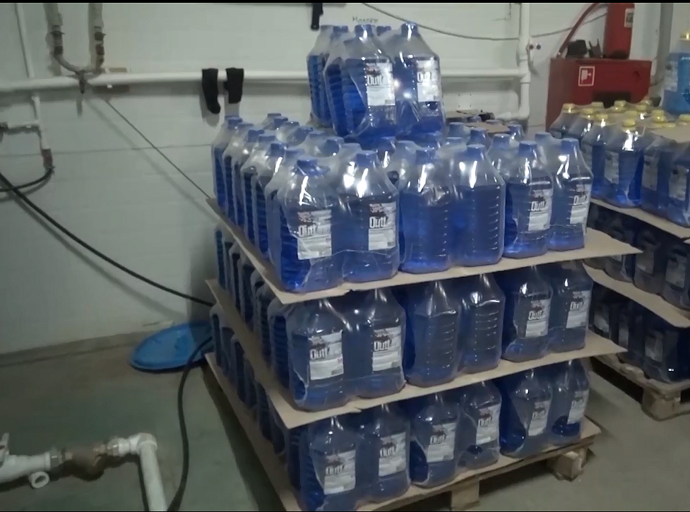 Производство незамерзайки было налажено основательно: автоматические производственные линии и более 36 тысяч пятилитровых канистр с готовой продукцией, пластиковые бутылки, крышки и этикетки. Товар сбывали на трассах и авто-рынках Москвы и области. В момент проверки полиция обнаружила 50 рабочих – незаконных эмигрантов, их ожидает штраф и выдворение из страны.