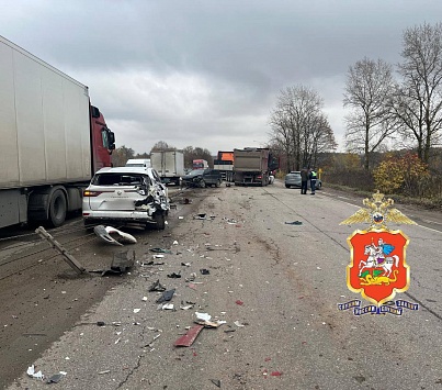 По предварительной информации, сегодня примерно в 12:20 на Домодедовском шоссе в районе поворота на деревню Крюково произошло попутное столкновение с участием двух грузовых и семи легковых автомашин, сообщает
