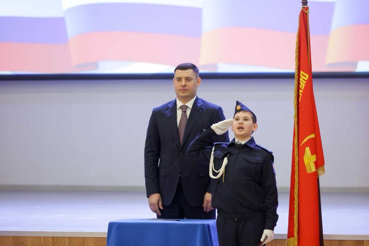 Глава Подольска принял участие в посвящении в кадеты учеников школы №32