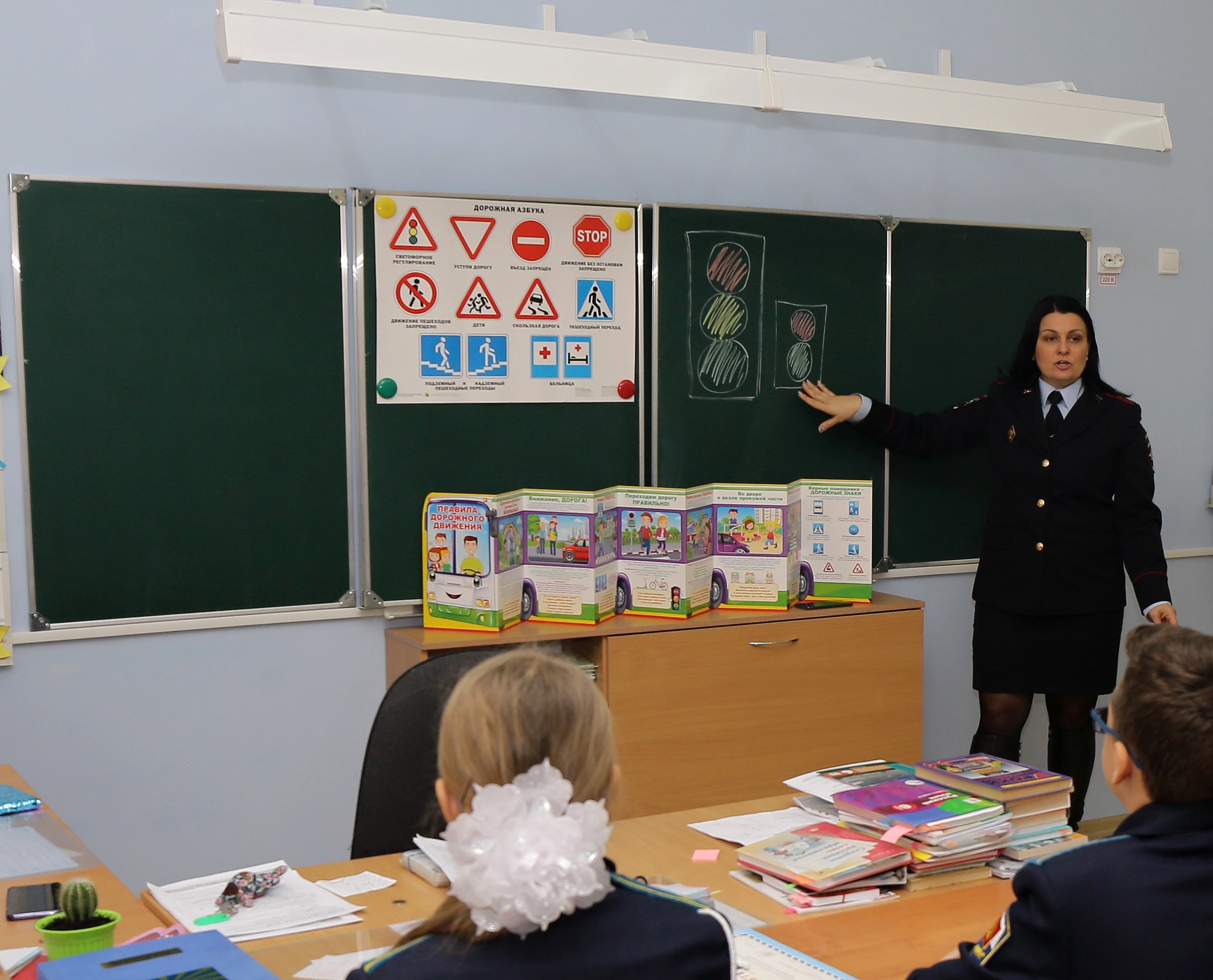 По окончании зимних каникул сотрудники ГИБДД вместе с педагогами школ напоминают детям о Правилах дорожного движения. Одно из таких занятий прошло в кадетском классе МОУ СОШ № 35 Подольска.