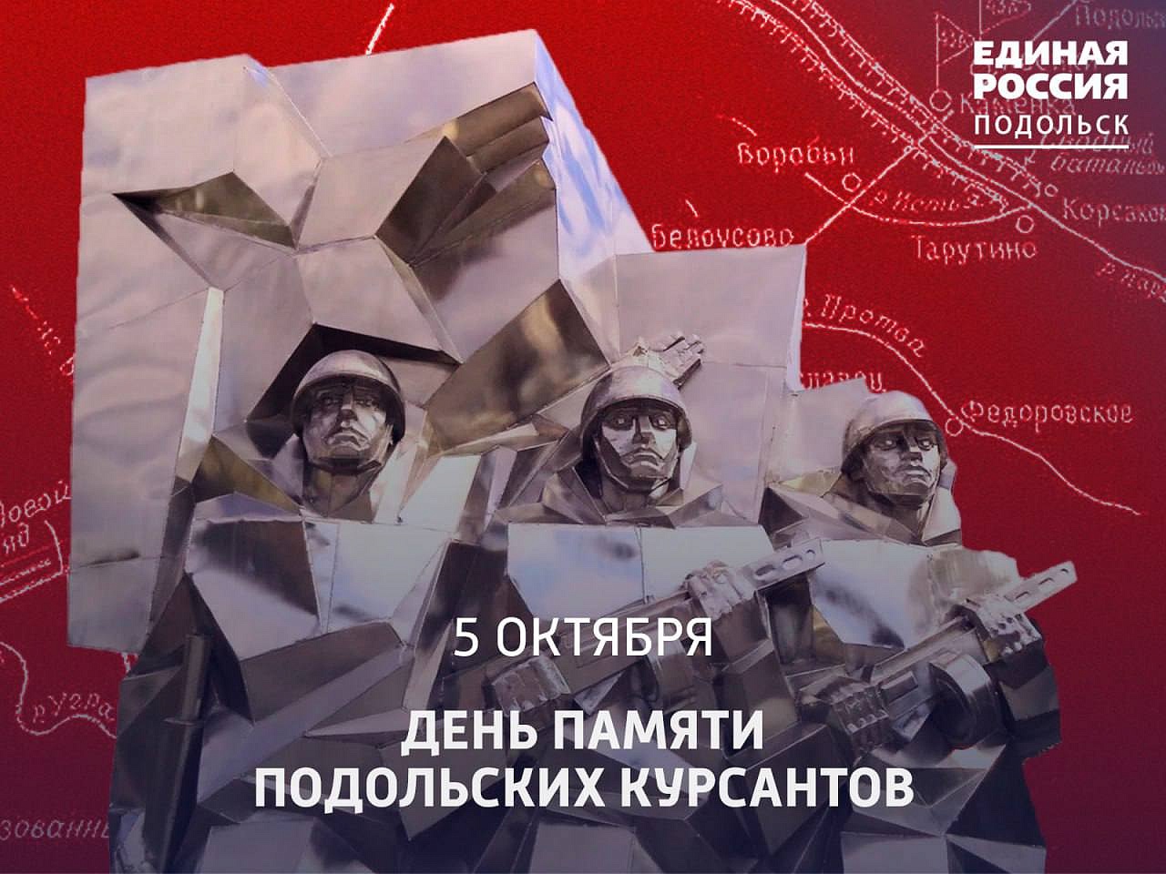 Мы гордимся мужеством и храбростью подольчан! Память о бессмертном подвиге героев живёт. Сегодня это исторически значимое событие увековечено в памятниках, улицах и школах, построенных и названных в честь Подольских курсантов.