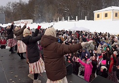 Дворцовая площадь в Дубровицах полна гостей. Проводить зиму пришли целыми семьями.
