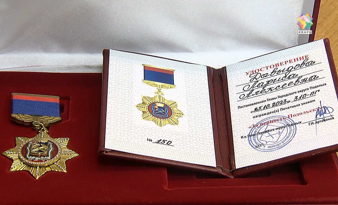 В честь дня народного единства, за особый вклад в сплочение людей посредством изобразительного искусства наградили известную подольскую художницу Ларису Алексеевну Давыдову. Исполняющий обязанности главы Григорий Артамонов вручил ей почетный знак «За верность Подольску».