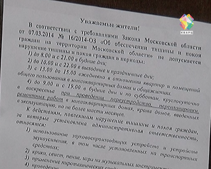 «Тишину нельзя нарушать по будням - с 9 вечера до 8 утра, по выходным - с 10 вечера до 10 утра, и в дневное время - с часу до трех. В воскресенье, в течение всего дня, запрещается проведение ремонтных работ по переустройству и перепланировке помещений в многоквартирных домах», - отмечает заместитель начальника Территориального отдела №35 Госадмтехнадзора Московской области Андрей Савин.
