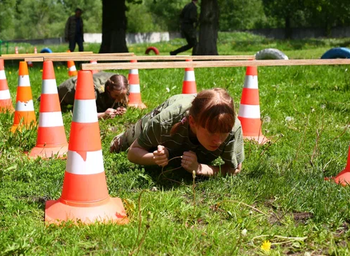 Ребята соревновались в прохождении по маршруту с преодолением препятствий, разборке-сборке автомата, метании гранаты и ножа, стрельбе, в навыках оказания первой помощи, знании истории - и не только.