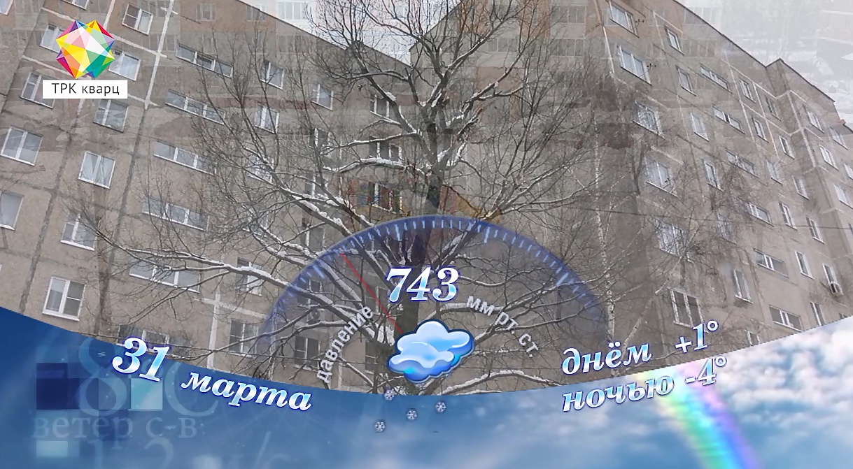 В четверг, 31 марта, в Подольске пасмурно, небольшой снег с дождём; температура воздуха ночью -4, днём +1 градус; атмосферное давление 743 мм ртутного столба; ветер восточный 2 м/с; относительная влажность воздуха 92%