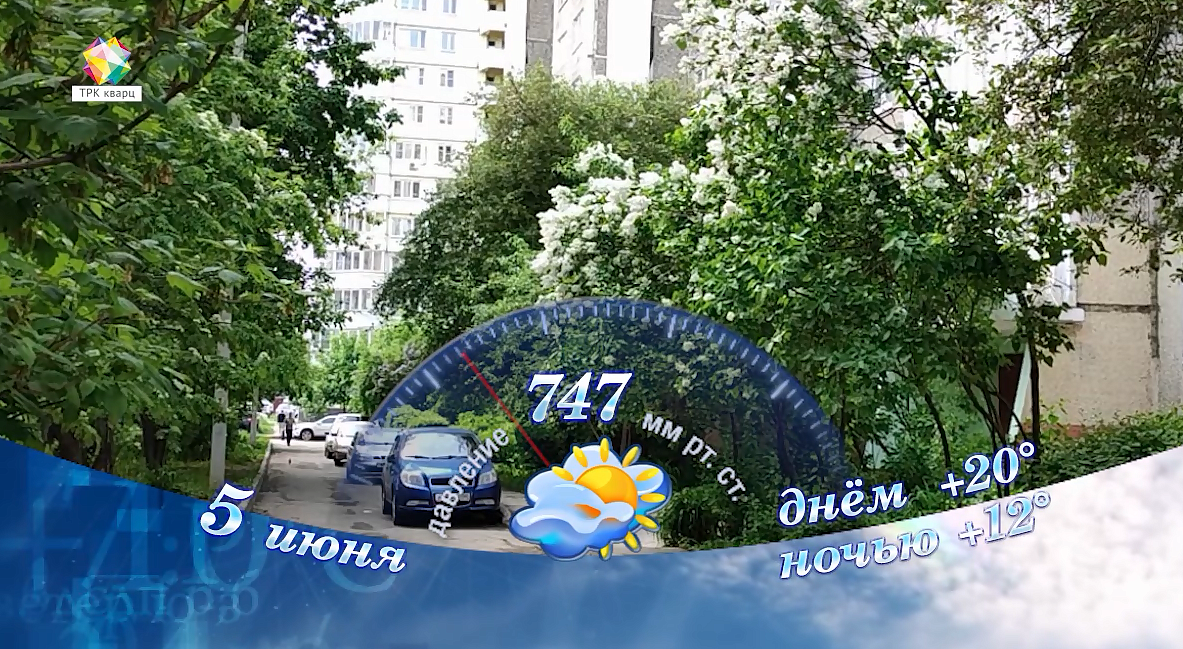 В воскресенье, 5 июня, в Подольске переменная облачность. Температура воздуха ночью +12, днём +20 градусов; атмосферное давление 747 мм ртутного столба; ветер северо-западный 4 м/сек; относительная влажность воздуха 44%.