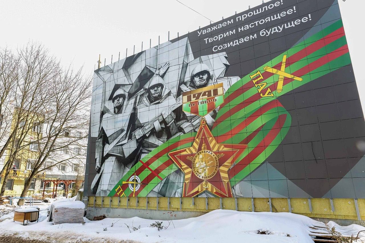Одной из ярких новинок на фасаде гимназии стало панно с изображением памятника Подольским курсантам, которое украсило здание и подчеркнуло историческую значимость учебного заведения.