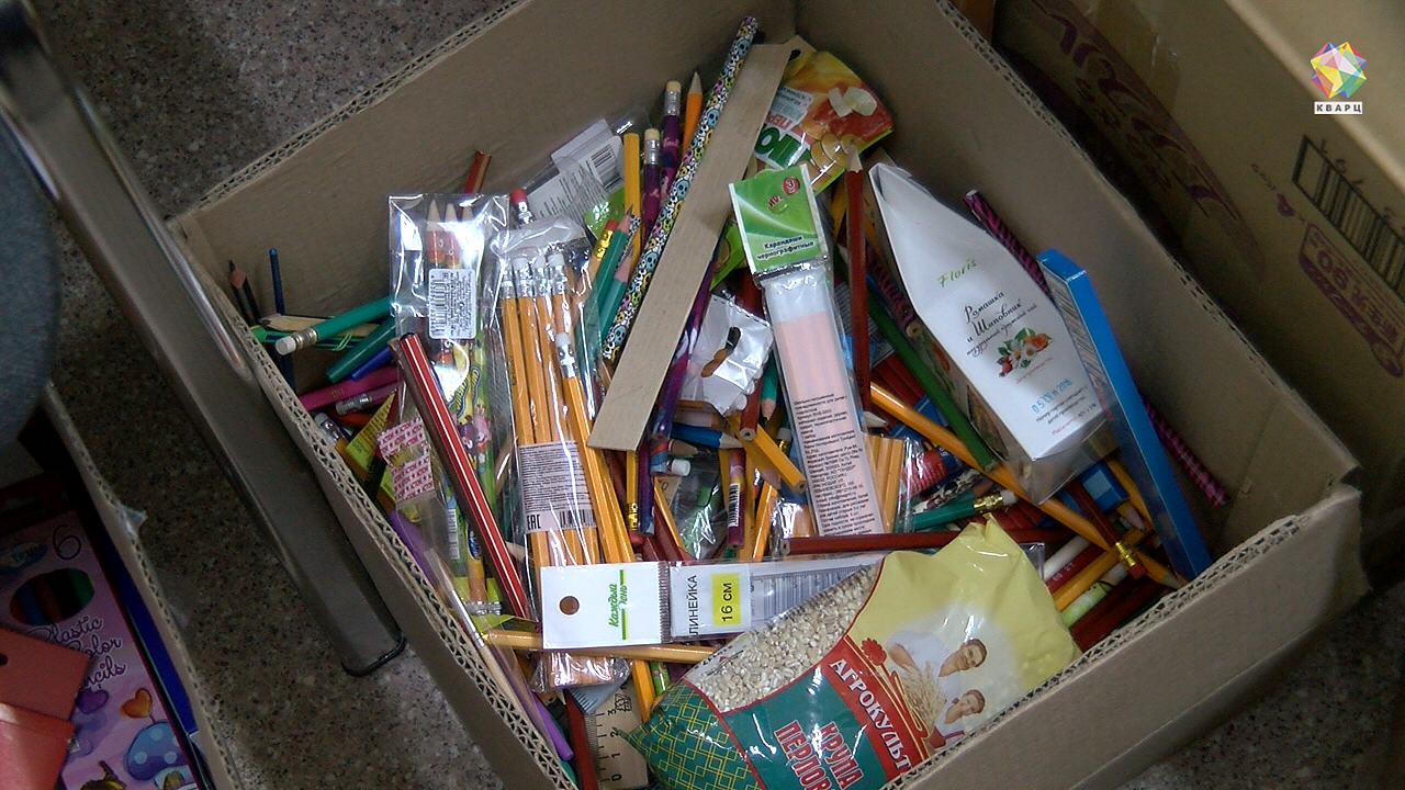 Здесь есть и школьные принадлежности, и детское питание, и подгузники для малышей. Все это упаковали и отправили в Центр помощи семье и детям. Уже там специалисты все рассортируют и раздадут.