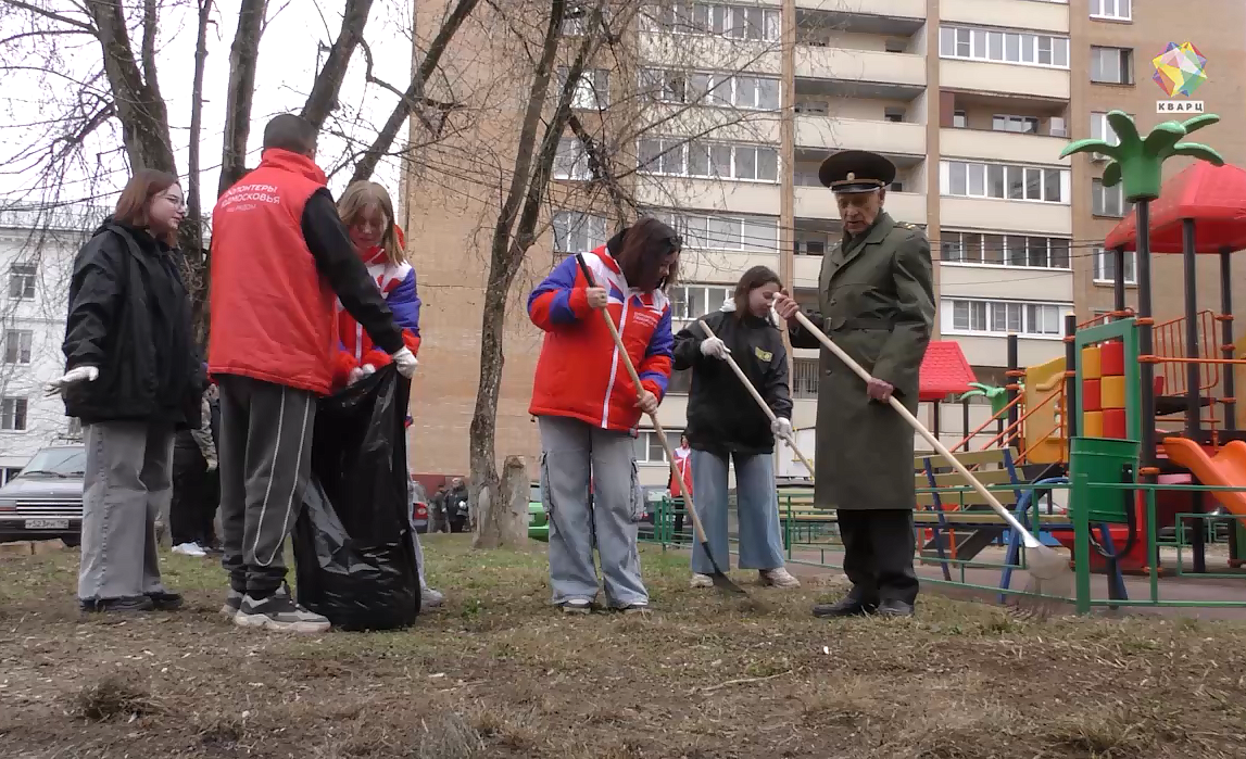 Дружно и с песней к уборке приступают активисты Российского союза молодёжи. Сегодня ребята наводят порядок во дворе дома №66 на ул. Комсомольской. Здесь живет участник войны Николай Иванович Герасимов, который, невзирая на возраст, а ему уже 97 лет, тоже взял в руки грабли.