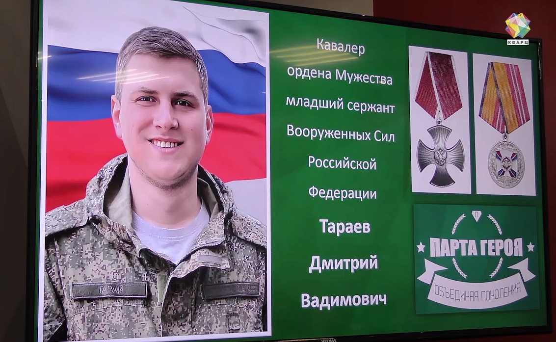 Его ученики и друзья и мама возлагают цветы к мемориальной доске, которая висит на стене малой ледовой арены. Дмитрий Тараев Посмертно награждён Орденом мужества. Сегодня ему бы исполнилось 28 лет.