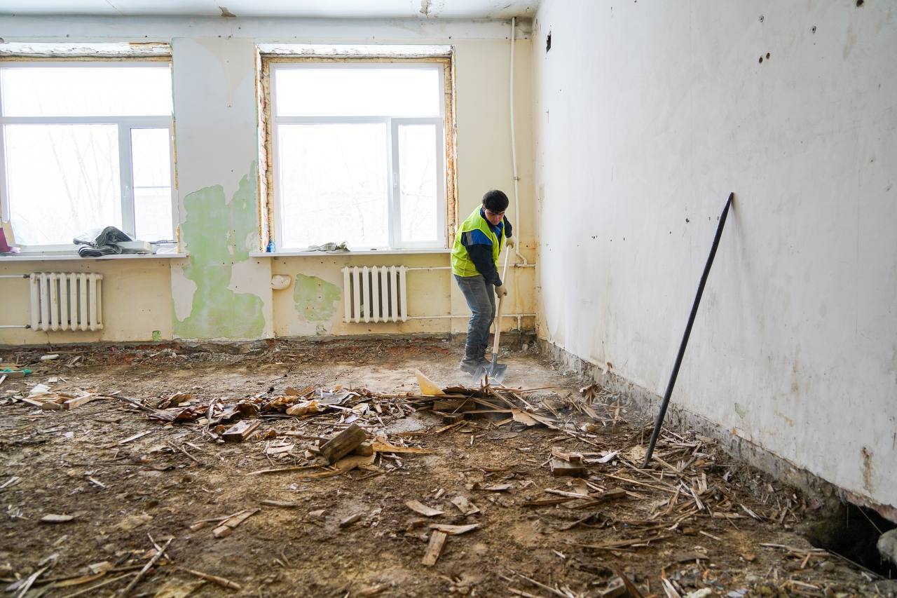 - Приступили к работам раньше, чем планировали первоначально. Уже к новому учебному году заменим инженерные коммуникации, обновим стены, пол, крышу, окна, фасад. Будет проведена отделка всех помещений, а в классы установим новую мебель и современное оборудование. Выполним и благоустройство территории, где также разместим новое спортивное ядро для детей. Сейчас в здании ведётся демонтаж, который продлится до конца февраля, - сообщил в своем