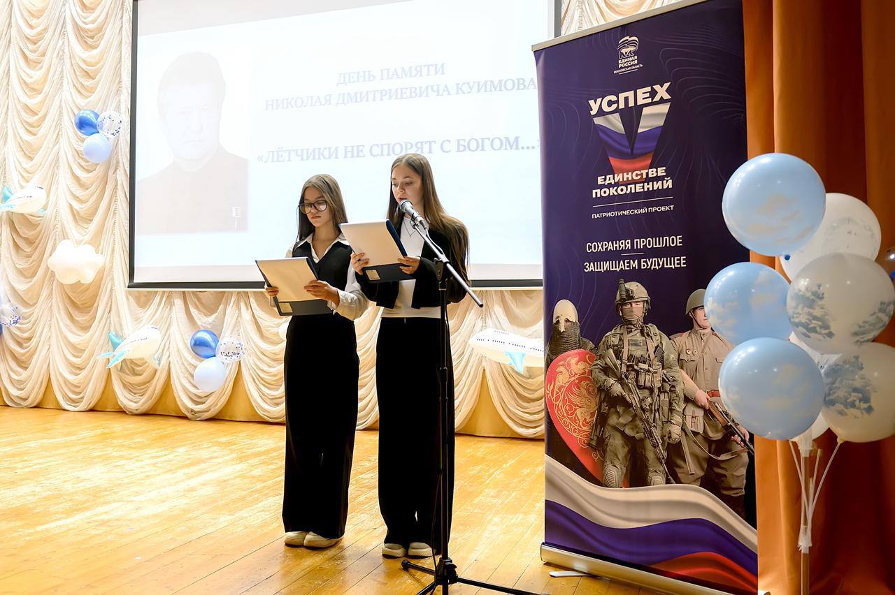 Сегодня ко Дню рождения Героя в школе прошло торжественное мероприятие, посвящённое памяти Николая Куимова. В нём приняли участие родные лётчика, представители Совета ветеранов, сослуживцы Героя, педагоги и ученики, сообщает