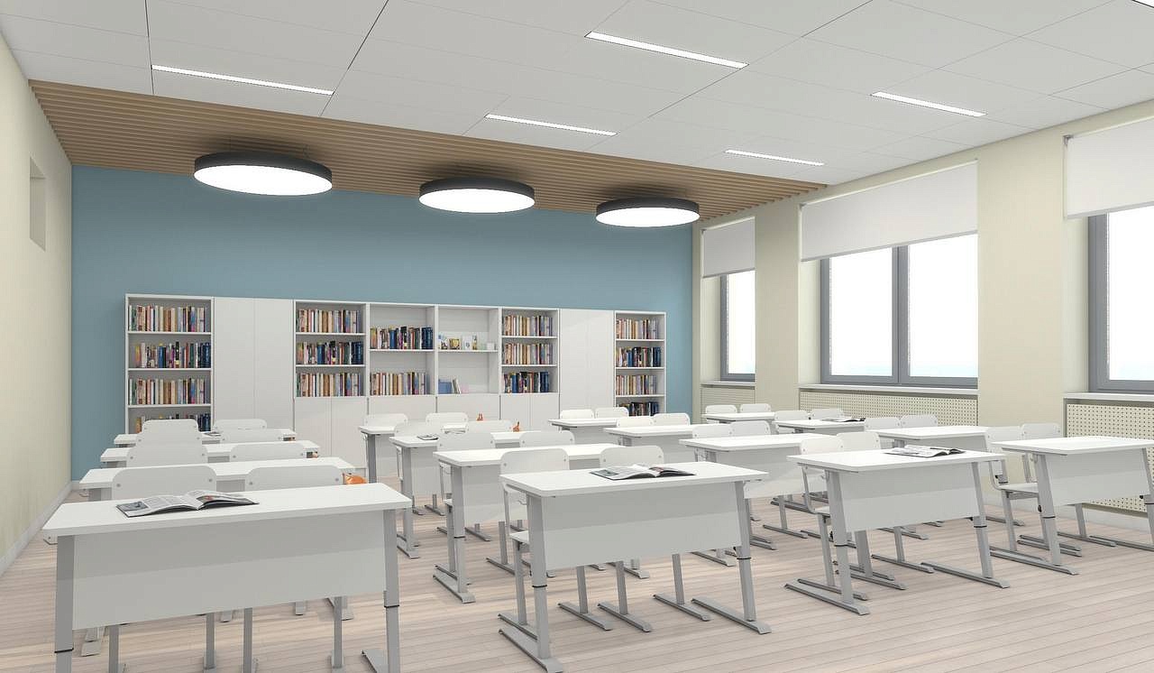 Здание будет разделено на блоки для начальной, средней и старшей школы. В первом разместят группы продленного дня, спортзал и медкабинет. В других — учебные классы, лаборантские, библиотечный центр, спортивный и актовый залы, а также столовую.