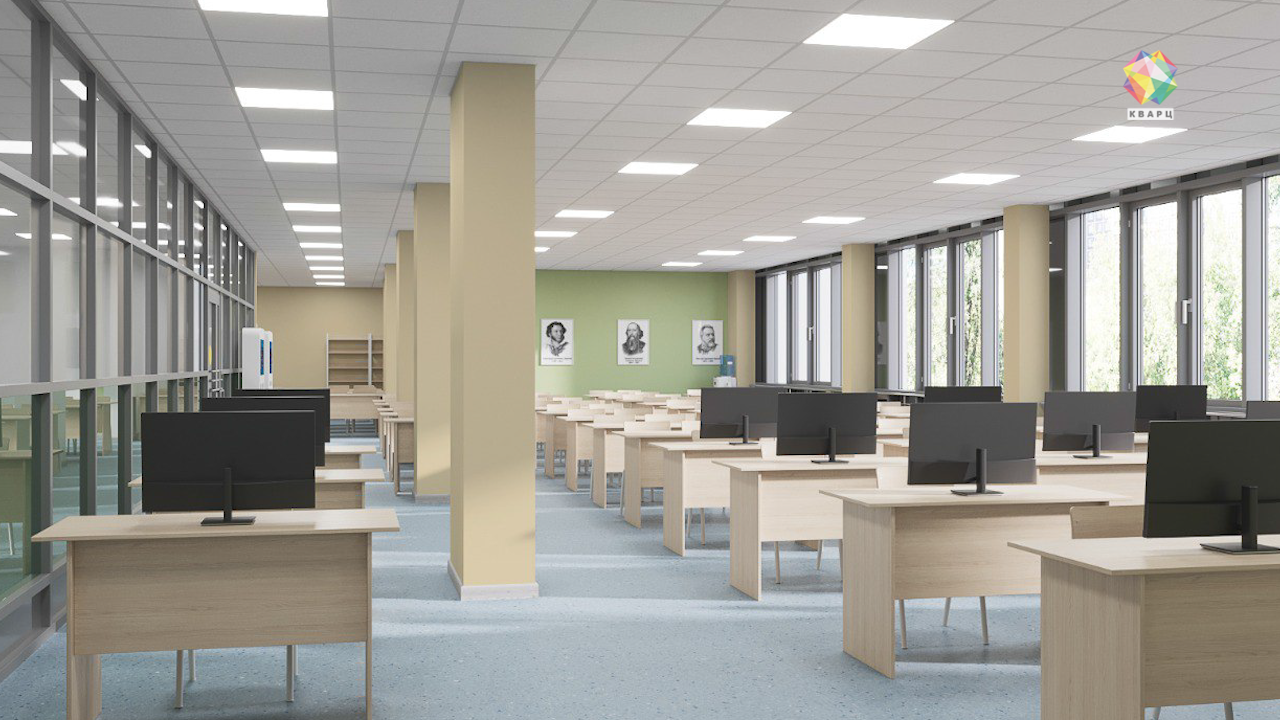 На улицы Победы 3В в микрорайоне Климовск скоро вырастет школа на 1100 мест. Пока работы в самом начале, строители завершают подготовку котлована. Общая полезная площадь здания составит порядка 18 тысяч квадратных метров. На визуализациях всё - по последнему слово техники: в классах и лабораториях - современное оборудование, а на улице - спортивные площадки и игровые зоны. Управлять школой будут с помощью системы «умный дом».