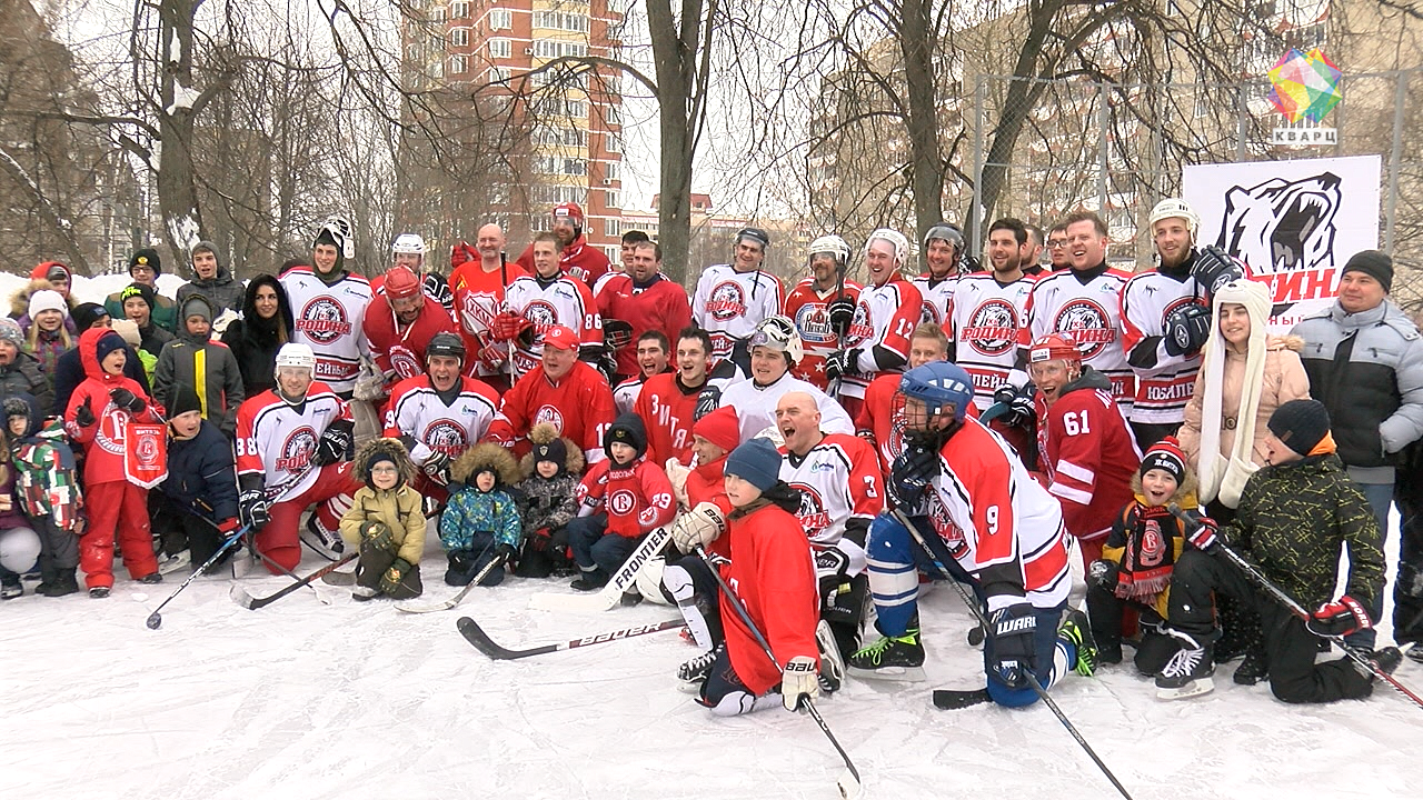 Известные игроки хоккейного клуба «Витязь» Максим Афиногенов, Алексей Семенов и тренер подмосковной команды Валерий Белов сыграли в дворовый хоккей в Подольске.