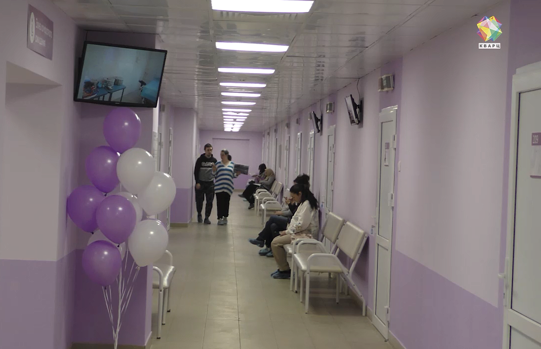 Завершился ремонт и в женской консультации, теперь она оформлена в нежно-лиловых оттенках. Дополнительно здесь установили современные инфоматы, которые позволяют пациенткам записаться на прием, если это не удалось сделать на госуслугах.
