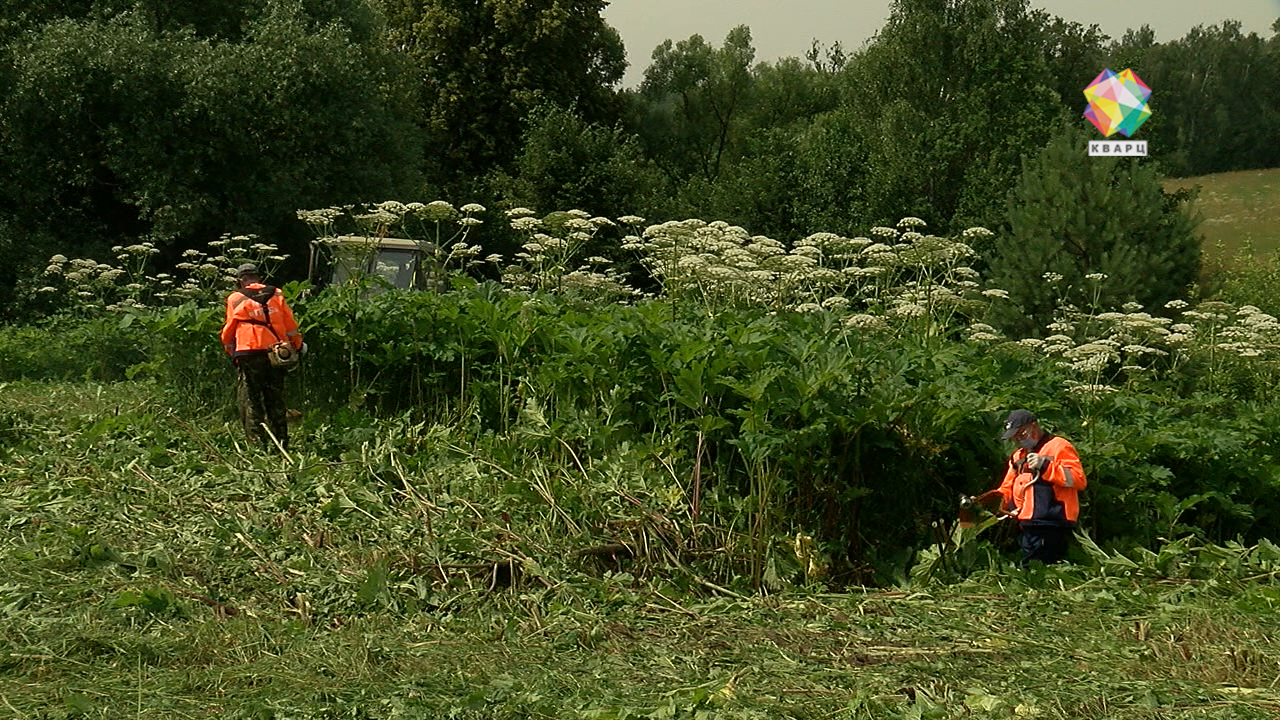 В труднодоступных местах, куда не может подобраться техника, борщевик косят вручную. Сотрудники ПКБ работают исключительно в защитных костюмах. Очки и маска обязательны, ведь пары скошенного растения очень опасны.