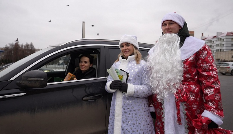Полицейский Дед Мороз и Снегурочка поздравили автолюбителей Подольска