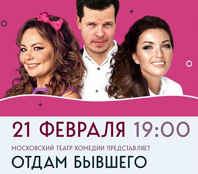 21 февраля в 19:00 КПЦ «Дубровицы» приглашает на спектакль «Отдам бывшего в хорошие руки», который представят артисты Московского театра комедии: Татьяна Морозова, Юлия Такшина и Илья Алексеев.