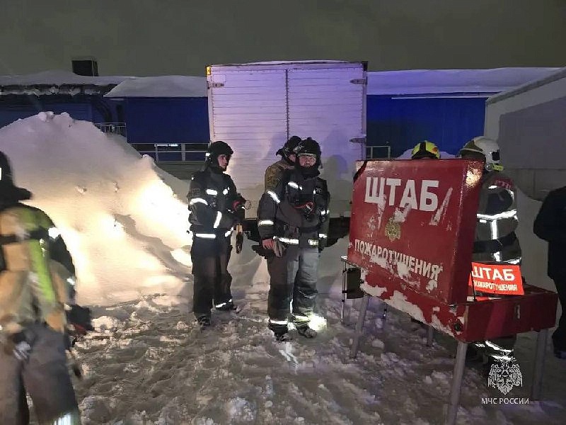 На месте пожара работают 56 человек и 17 единиц техники. Пострадавших нет — 50 человек самостоятельно эвакуировались до приезда огнеборцев.