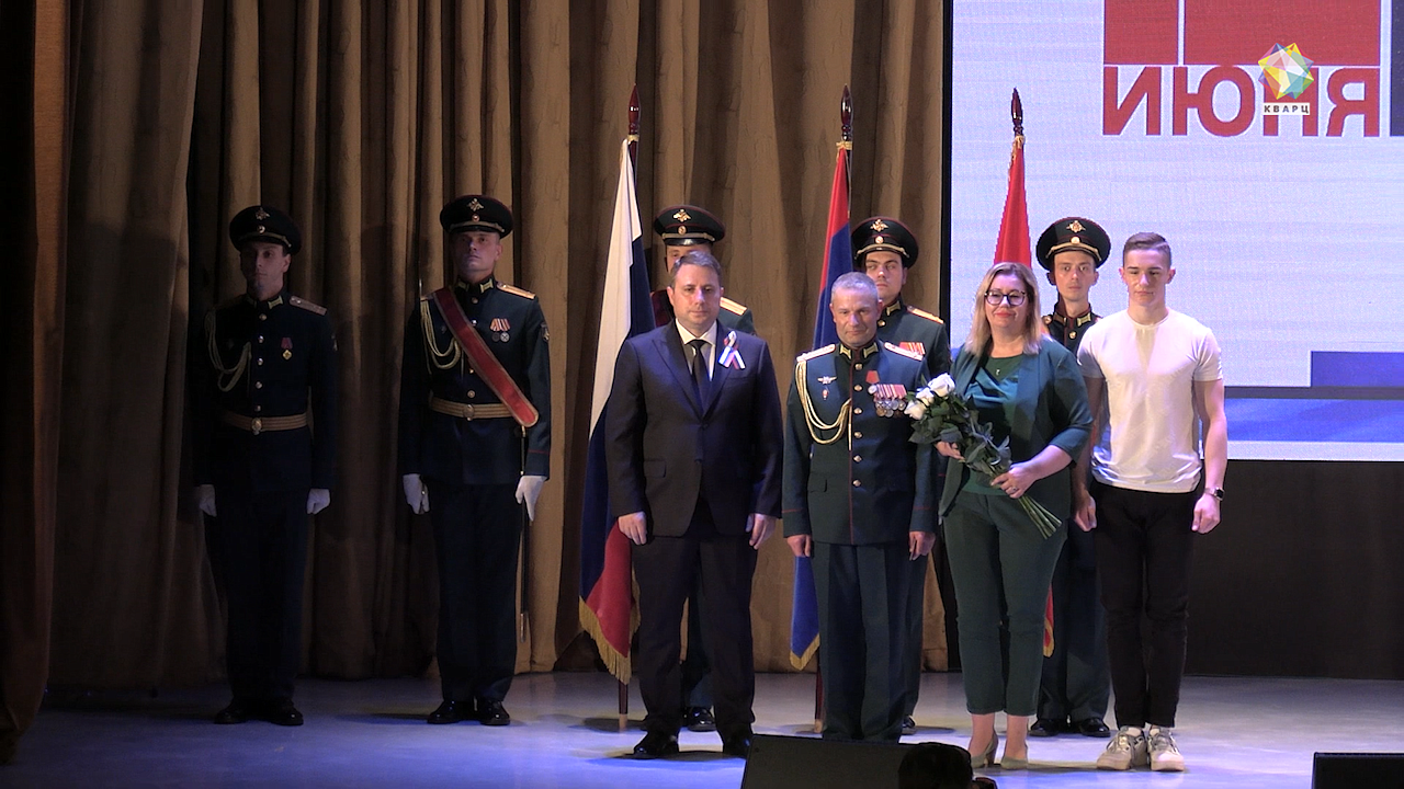 Атмосфера праздника захватывает в фойе КЗА, вот танцует участник Великой Отечественной Николай Герасимов. Торжественности в преддверии Дня России задают герои дней сегодняшних, под звуки марша внося в зал флаги страны, региона и округа и штандарт Славы Подольска со знаком «Защитникам Подмосковья». Открывает официальную часть глава округа. Дмитрий Жариков отмечает, что День России - праздник, который возвращает нас к истокам, праздник сплоченности - национальной и культурной. Что Подольск - неотъемлемая часть великой страны, и его жители во все времена готовы встать на защиту своей родины - так было, есть и будет.