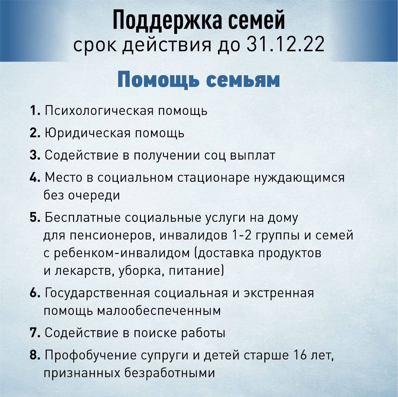 Кроме того, семьи получат юридическую и социальную помощь, содействие в получении соцвыплат