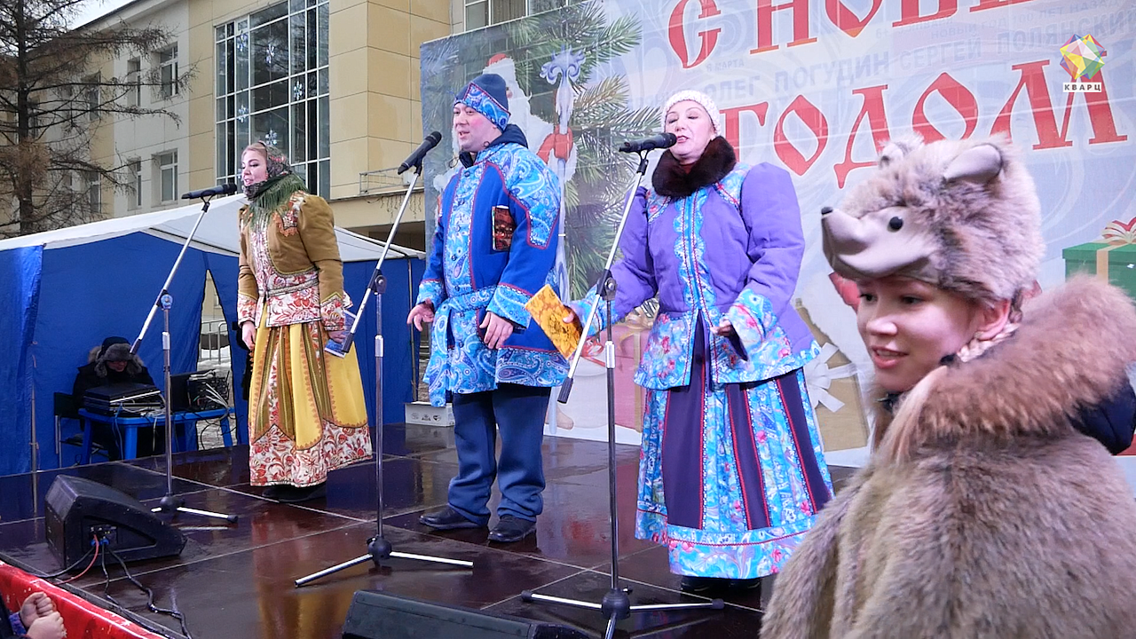 Гостям, пришедшим на праздник в карнавальных костюмах, вручили сладкие призы. Ну, а самым активным участникам конкурсов - билеты на спектакль «Снежная королева». И какой праздник обойдется без главного волшебника и его внучки - Снегурочки? Поздравили с Новым годом и завели дружный хоровод. На этом праздничные гуляния не закончились, о них расскажем в следующих выпусках.