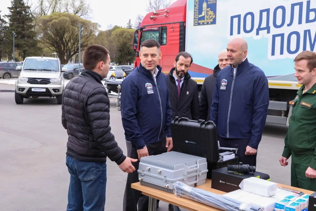 Сегодня заключительный день акции «Подольск помогает». Вместе с депутатами горсовета Владимиром Дзагоевым и Виктором Щукиным Глава Подольска Григорий Артамонов передал защитникам партию снаряжения, собранную строго по их прямым запросам: генераторы и аккумуляторы, детекторы БПЛА «Булат-4», автомобильные системы РЭБ, тепловизионные прицелы, рации, зарядные устройства и пауэрбанки.