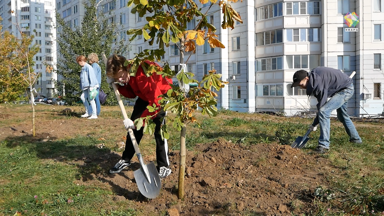 Ну, а пока своей очереди ждут деревья - дубы, клёны, сосны и липы и порядка ста кустарников. Школьники и студены приступили к посадке одним из первых.