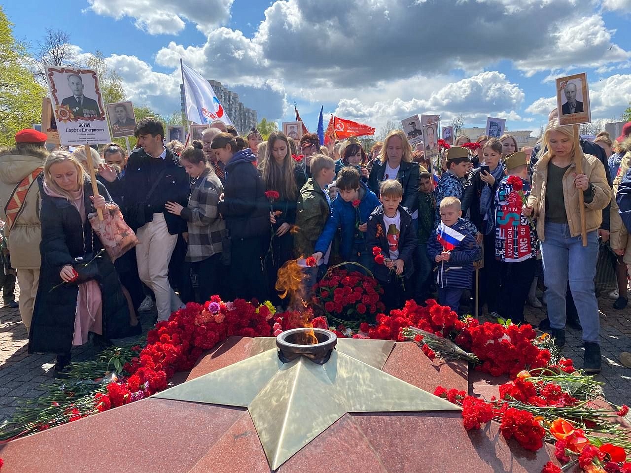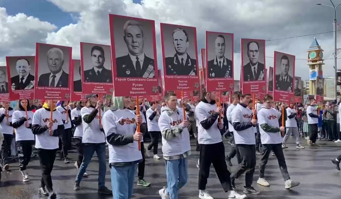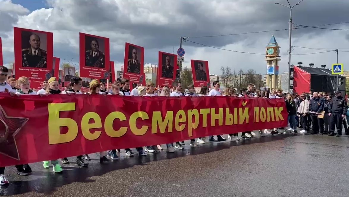Так, по улицам в едином строю "Бессмертного полка" прошли герои войны и потомки победителей, следом по центру городского округа проехала военная техника, после чего к Вечному огню в память о героях Великой Отечественной возложили цветы.