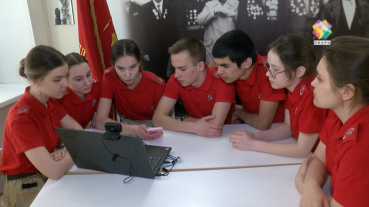 Онлайн-игру проводят в школьном музее, посвященном подвигу Подольских курсантов. И вот, все внимание на экран - проверка знаний началась.