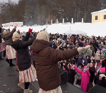 Дворцовая площадь в Дубровицах полна гостей. Проводить зиму пришли целыми семьями.
