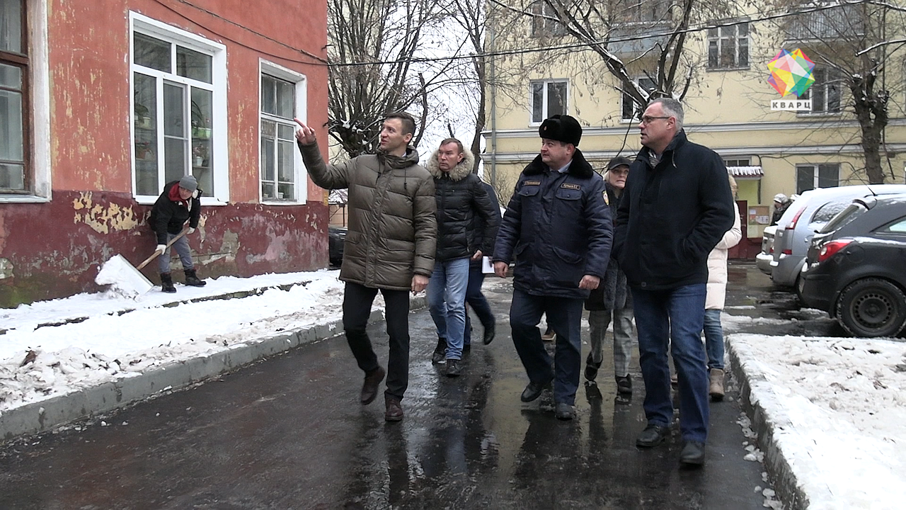 Сегодня экзамен сдают сотрудники управляющей компании микрорайона Шепчинки. Первое, на что обращает свой взгляд замглавы, - это козырёк подъезда, ну, а дальше помогают местные жители.