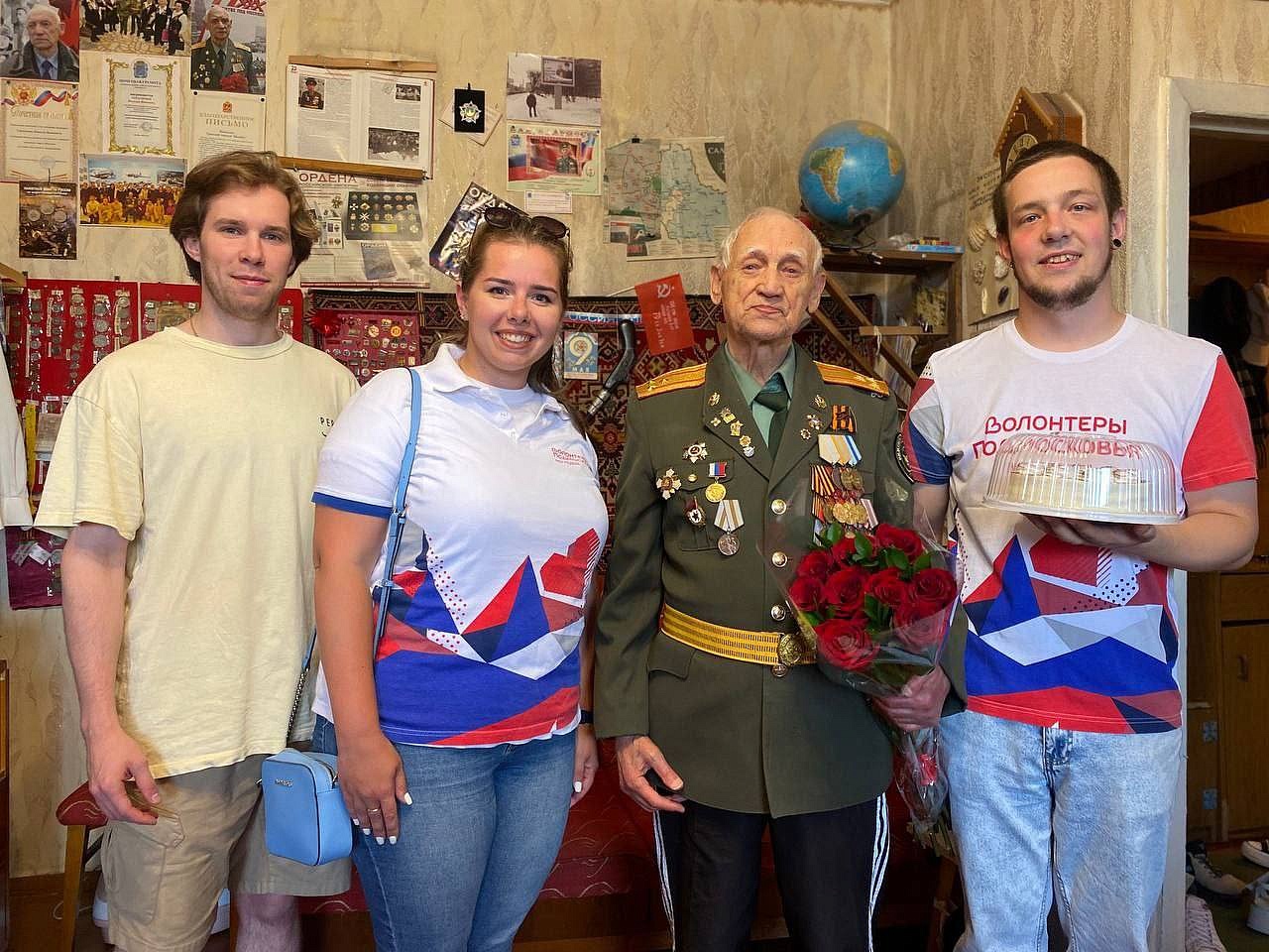 С 97-летием фронтовика поздравили подольские волонтёры.