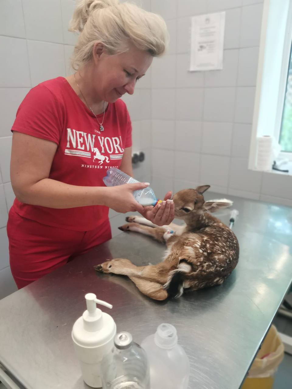 Малыша привезли в Госветслужбу г.о. Домодедово и г.о. Подольск, где специалисты оказали Герде - именно так зовут олененка-девочку - экстренную помощь. Сейчас она уже идёт на поправку, хорошо ест и набирает вес.