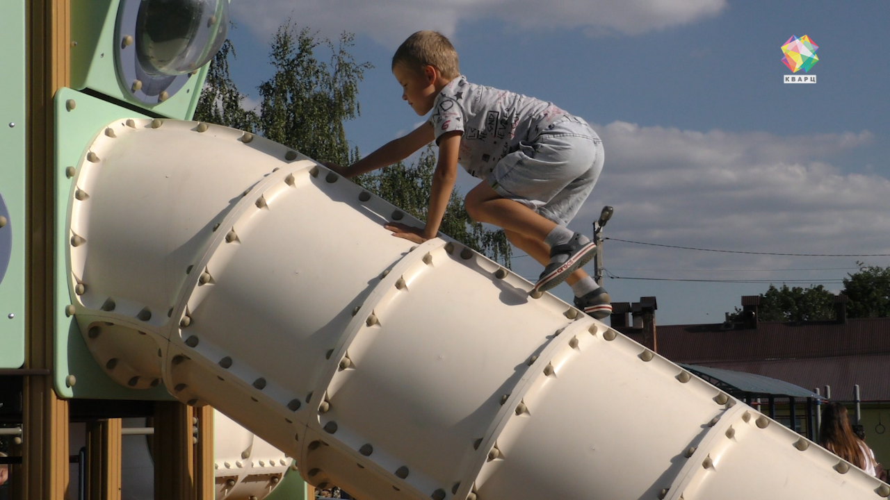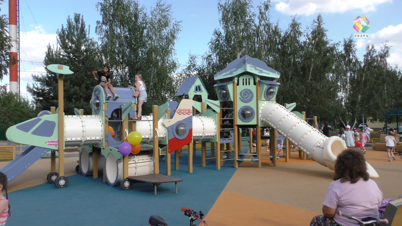 Комплекс площадью 450 квадратных метров оформлен в космической тематике. По центру большой летательный аппарат с различными видами горок. По соседству паутина в виде лунохода. Много здесь и разновидностей качелей, а ещё небольшой спортивный комплекс и песочница для самых маленьких.