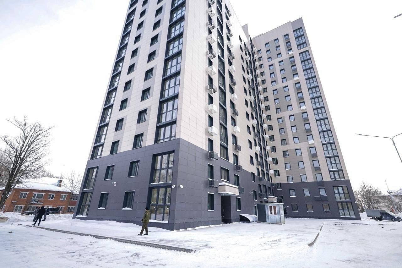 Это современный 17-этажный двухсекционный дом на 199 квартир. Сейчас идут финальные работы — чистовая отделка. Квартиры передадут под ключ: людям останется только перевезти вещи, расставить мебель и начать новую главу жизни в комфортных условиях. В новое жильё переедут 390 человек.