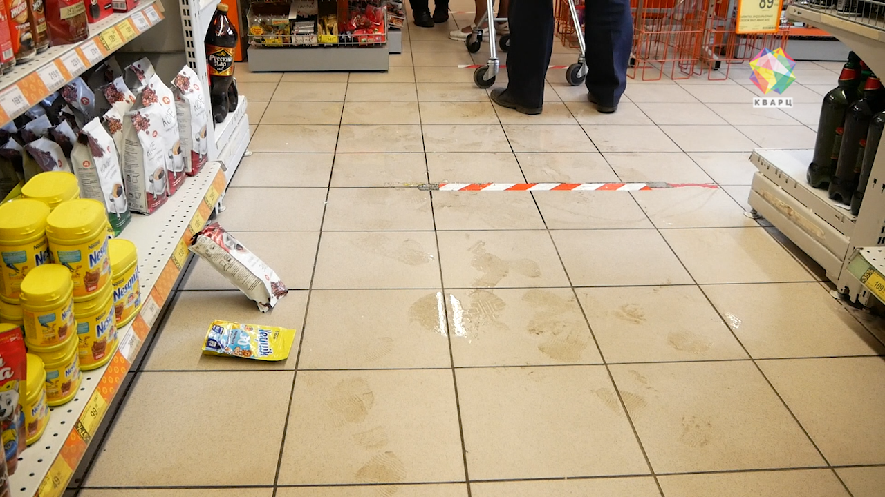 Однако продавцы уверяют, что ленту на полу меняли всего неделю назад. Верится с трудом. Здесь и уборку-то не делают, в магазине грязь и полная антисанитария.